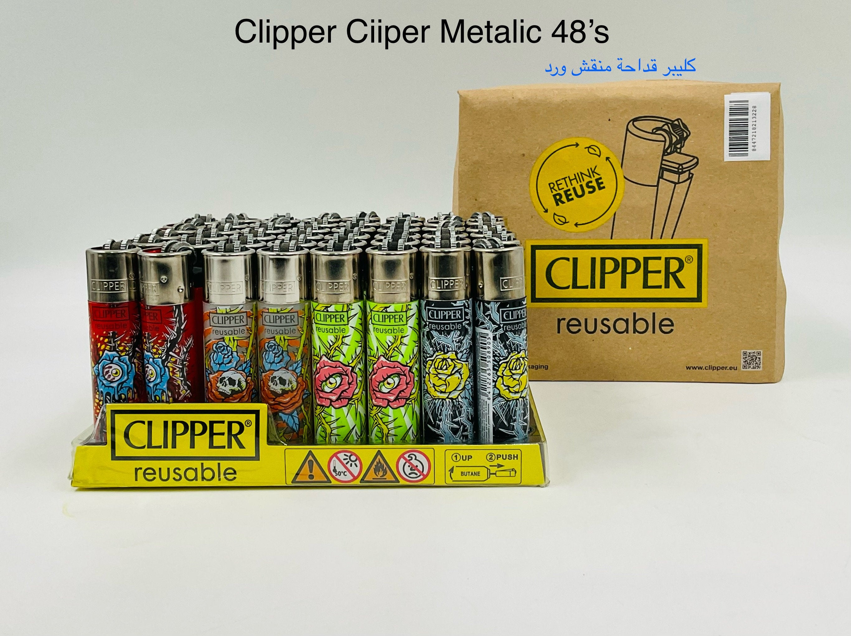 Clipper Reusable Lighters Assorted Designs 48pcs